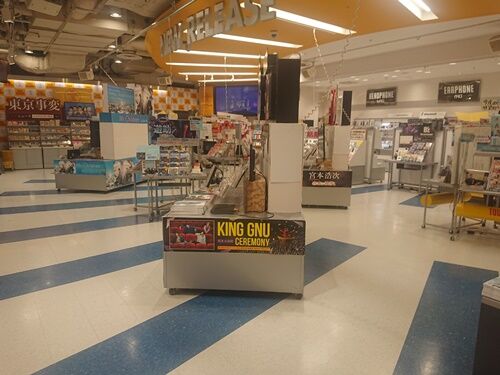 本日19時頃のタワーレコード新宿店7階。金曜日ということもあり、いつもであればだいたいインストアイベントをやっていて人がいっぱいいる時間帯なのですが、当然のように全部中止となり、現在がっつりレイアウトも変更してあって、もう最初から「インストア…